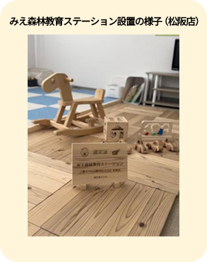三重スバル 四日市店・松阪店の2店舗は、この「みえ森林教育ステーション」に認定されており、店内のキッズコーナーに並んで、「みえ森林教育ステーション」が設置されています。
