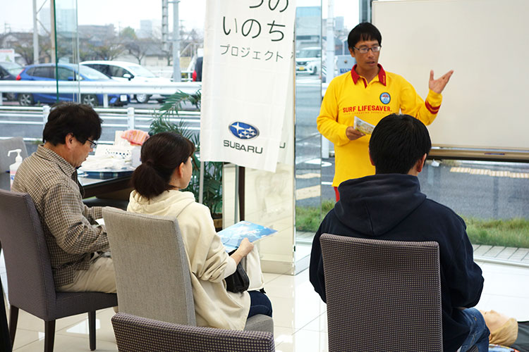 水辺の事故ゼロを目指しているライフセーバーの方から、救命救急方法やいざというときに役立つ行動を学ぶことができます。