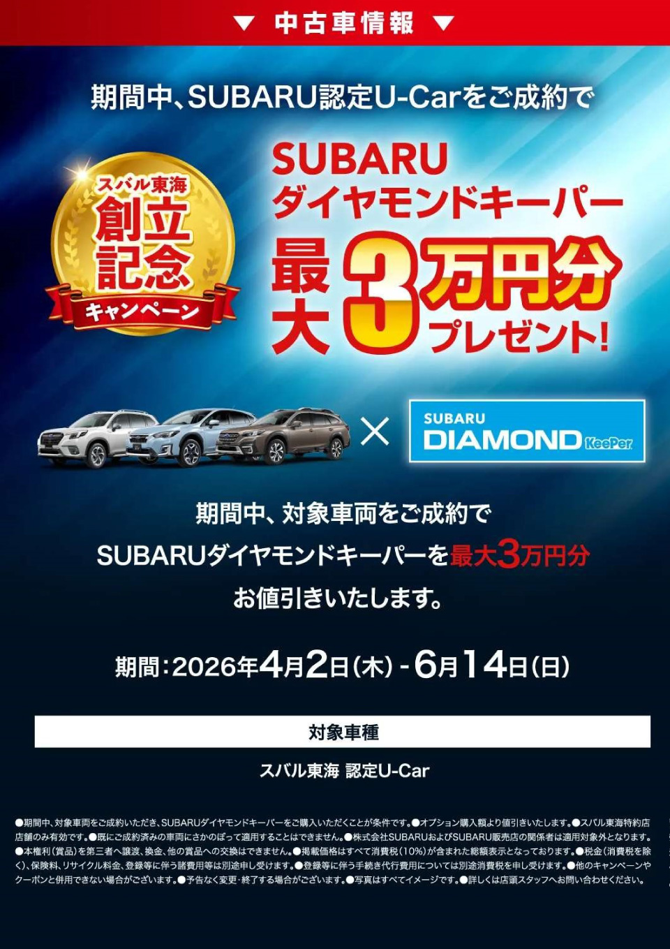 SUBARUダイヤモンドキーパー最大3万円分プレゼント